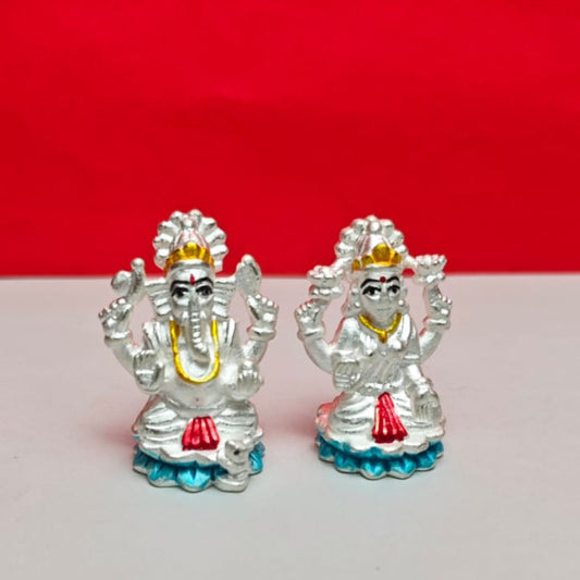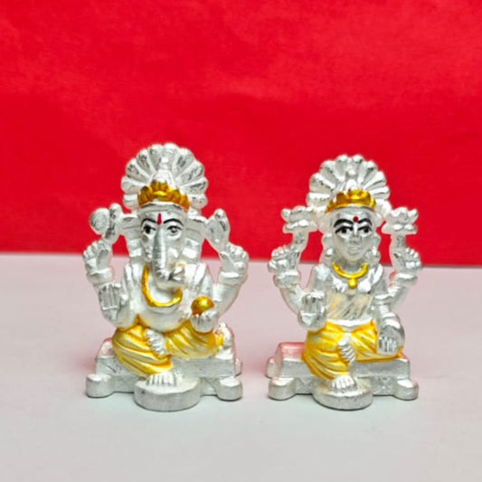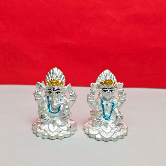 Divine Lakshmi Ganesh Silver Idol Set