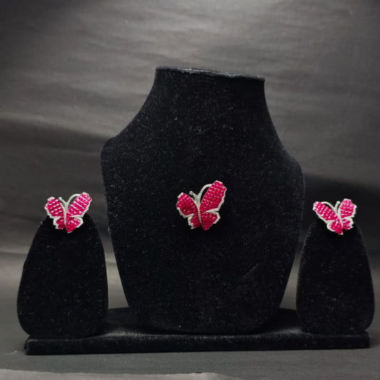 Ruby Flutter Butterfly Pendant & Earring Set