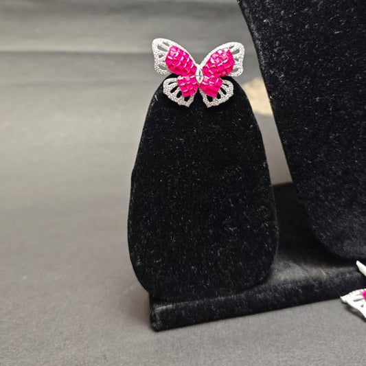 Pink Flutter Silver Butterfly Pendant Set